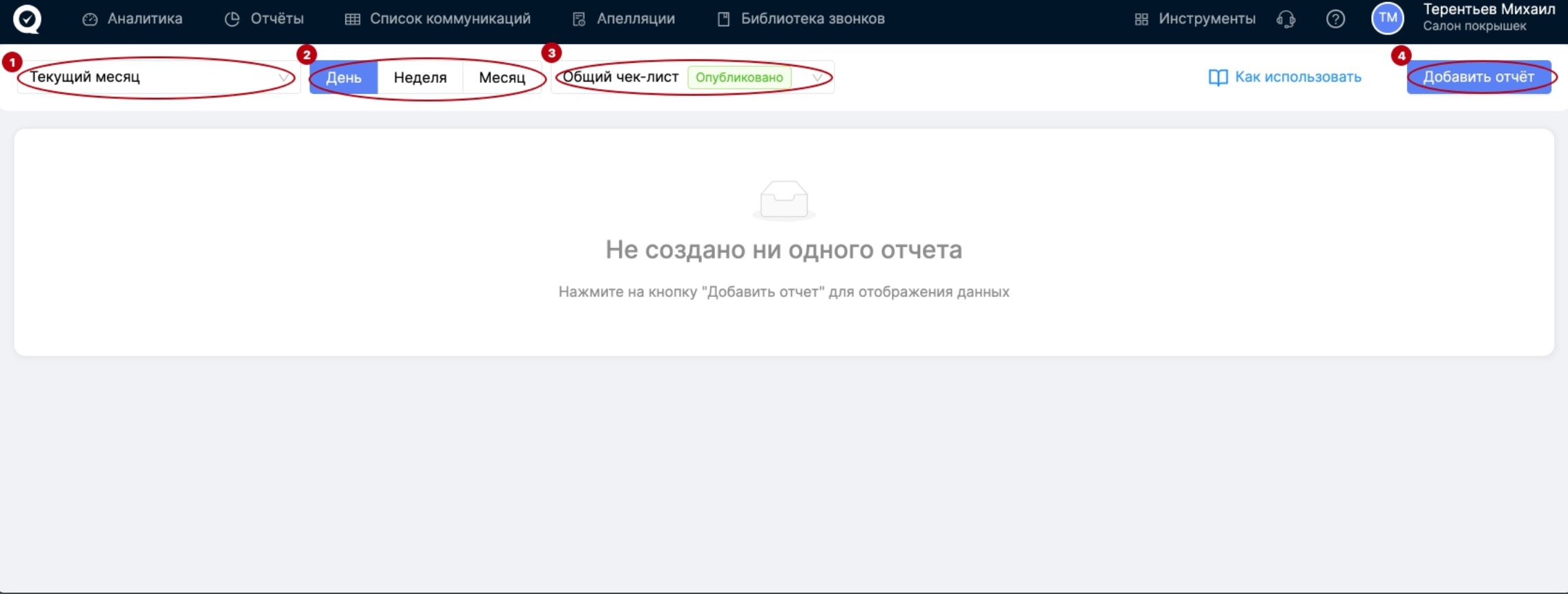 Добавить отчёт - нажмите на эту кнопку, чтобы добавить первый отчёт.