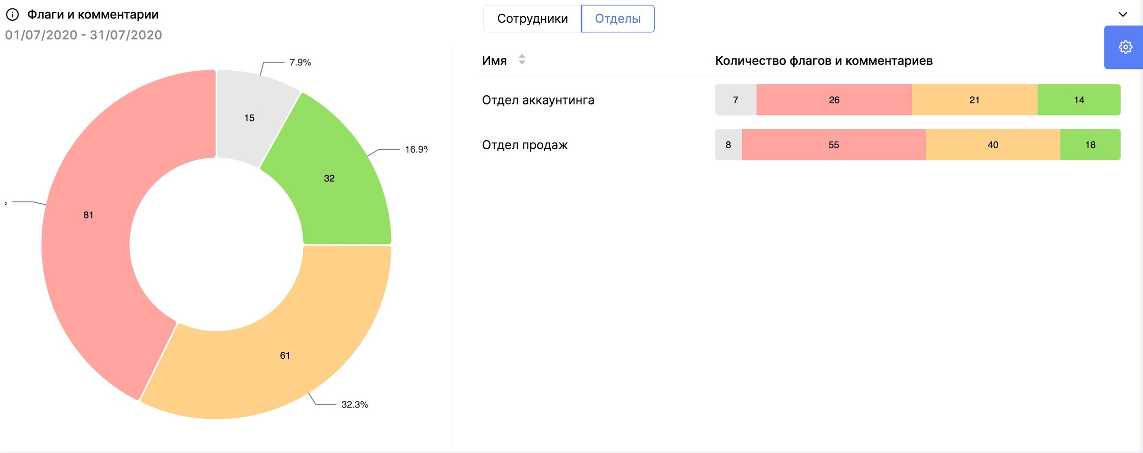 На количество флагов можно смотреть в разрезе как сотрудников, так и отделов.