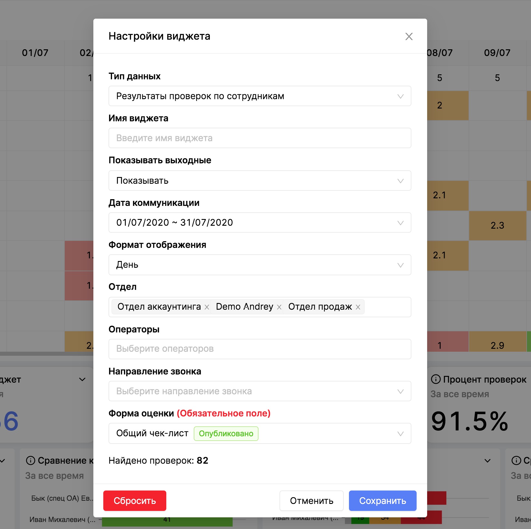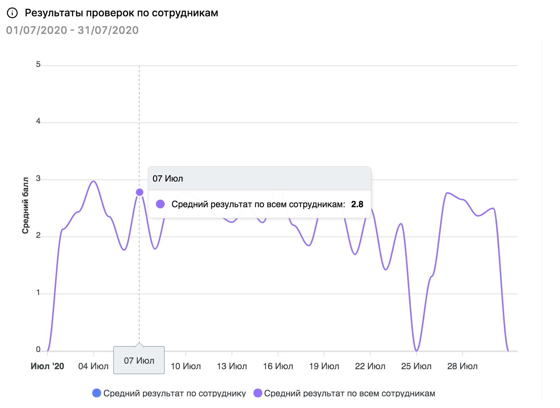Данный виджет отображает итоговые результаты проверок по каждому сотруднику в динамике по выбранному периоду.
