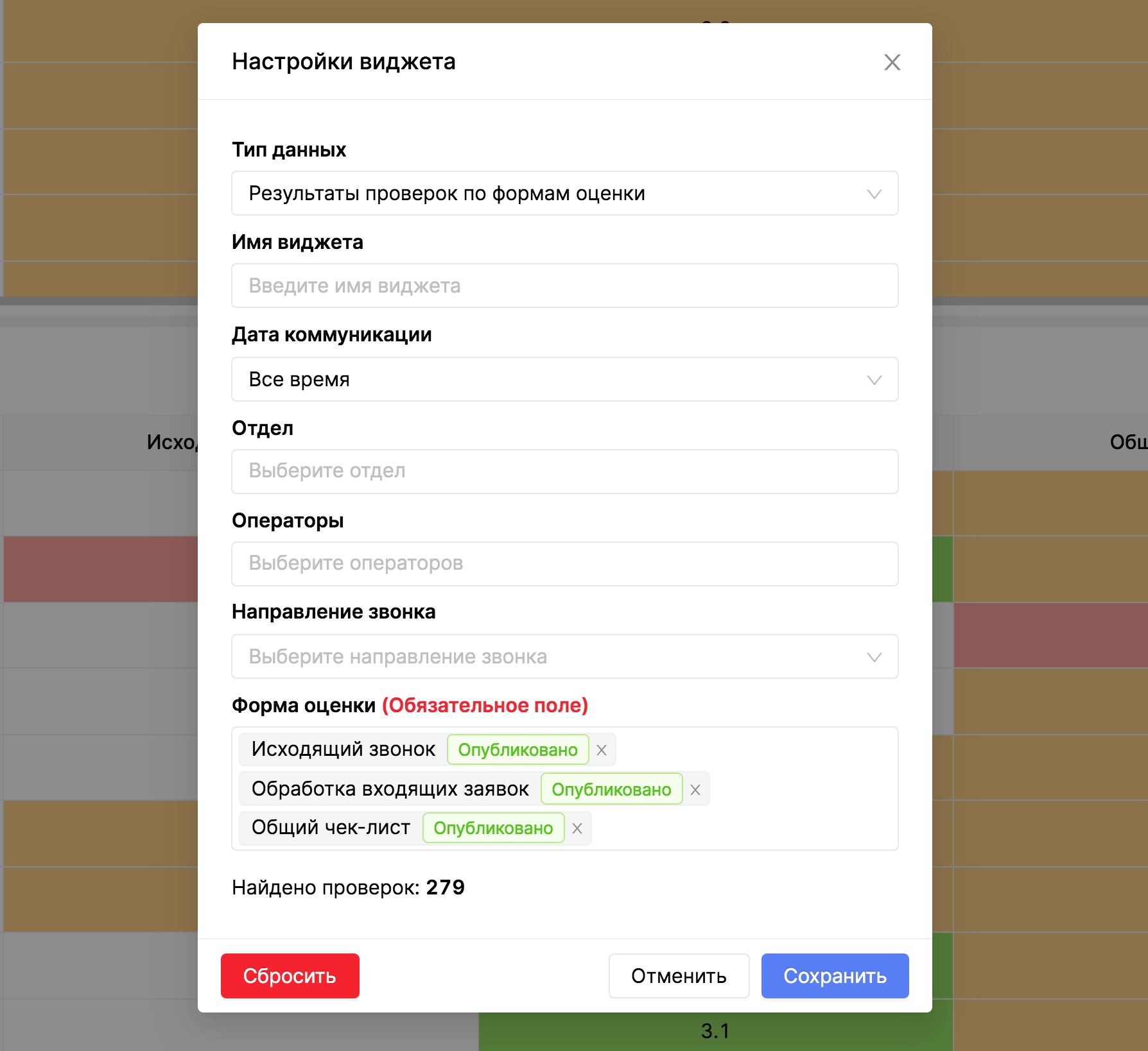 В данном виджете необязательно выбирать несколько форм оценки. Вы можете выбрать конкретную и посмотреть аналитику по ней.