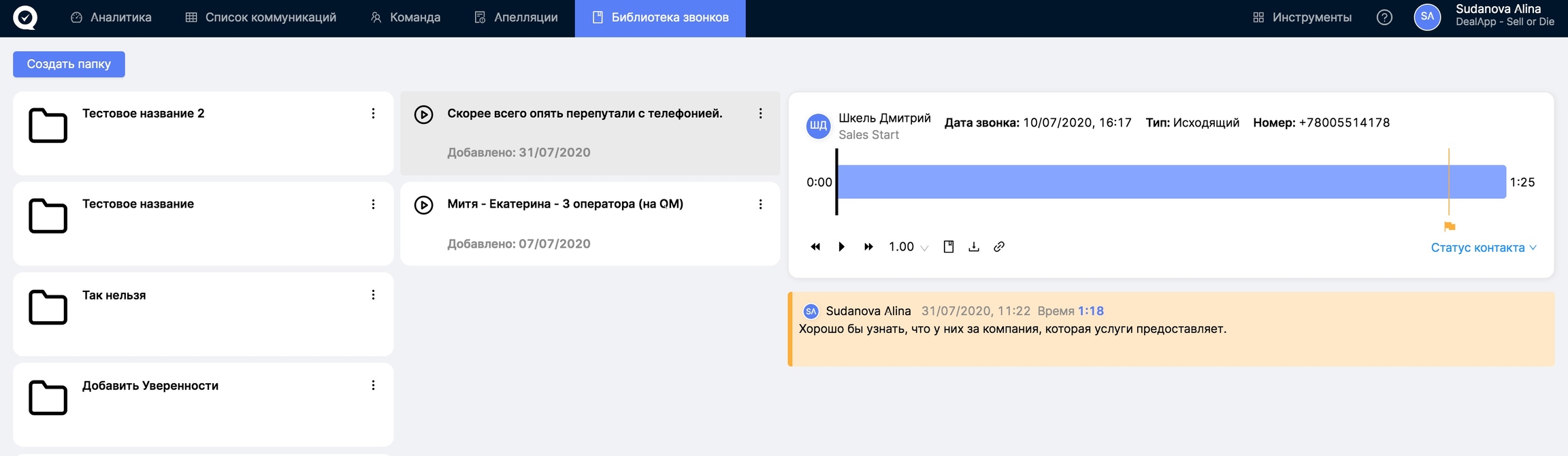 Важно! В библиотеку можно добавить только оцененный звонок. После его добавления в библиотеку вы можете открыть папку и кликнуть по названию звонка для того, чтобы раскрыть подробности проверки.