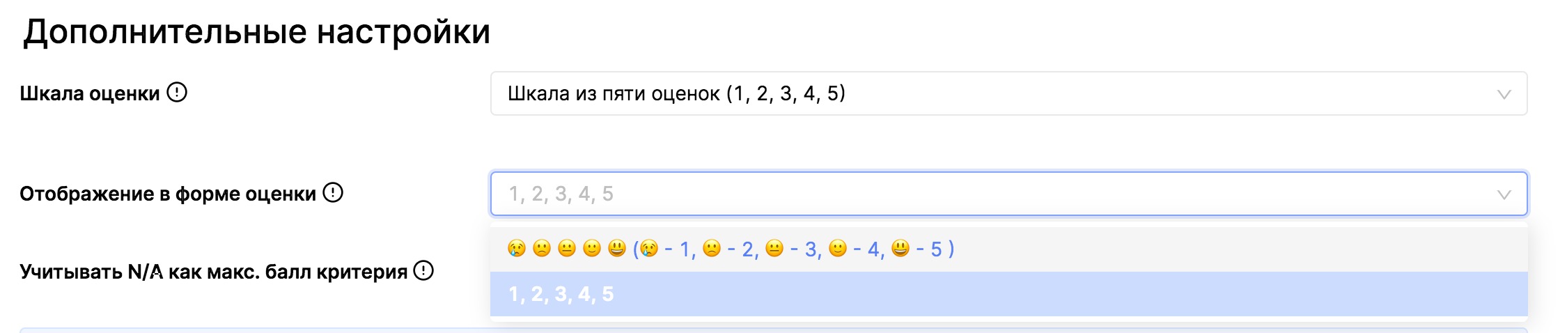 Также можно выбрать альтернативные варианты оценки в пункте Отображение в форме оценки: