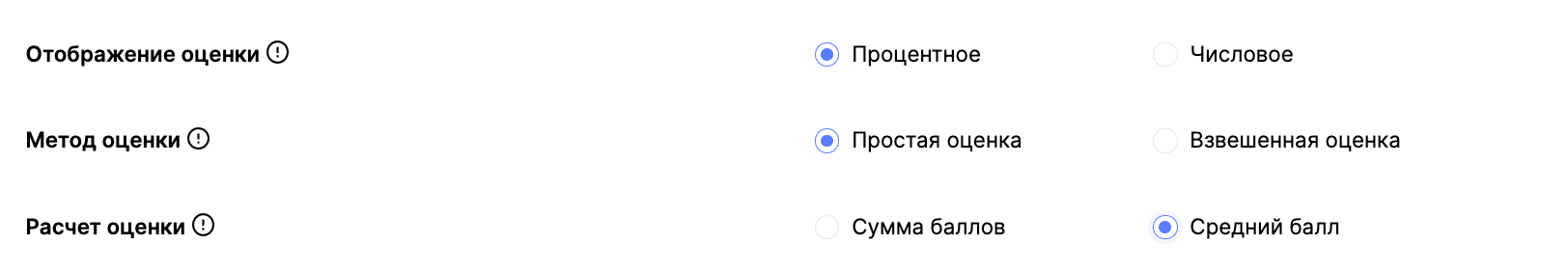 В этой статье мы остановимся на следующем формате настроек форм оценки: