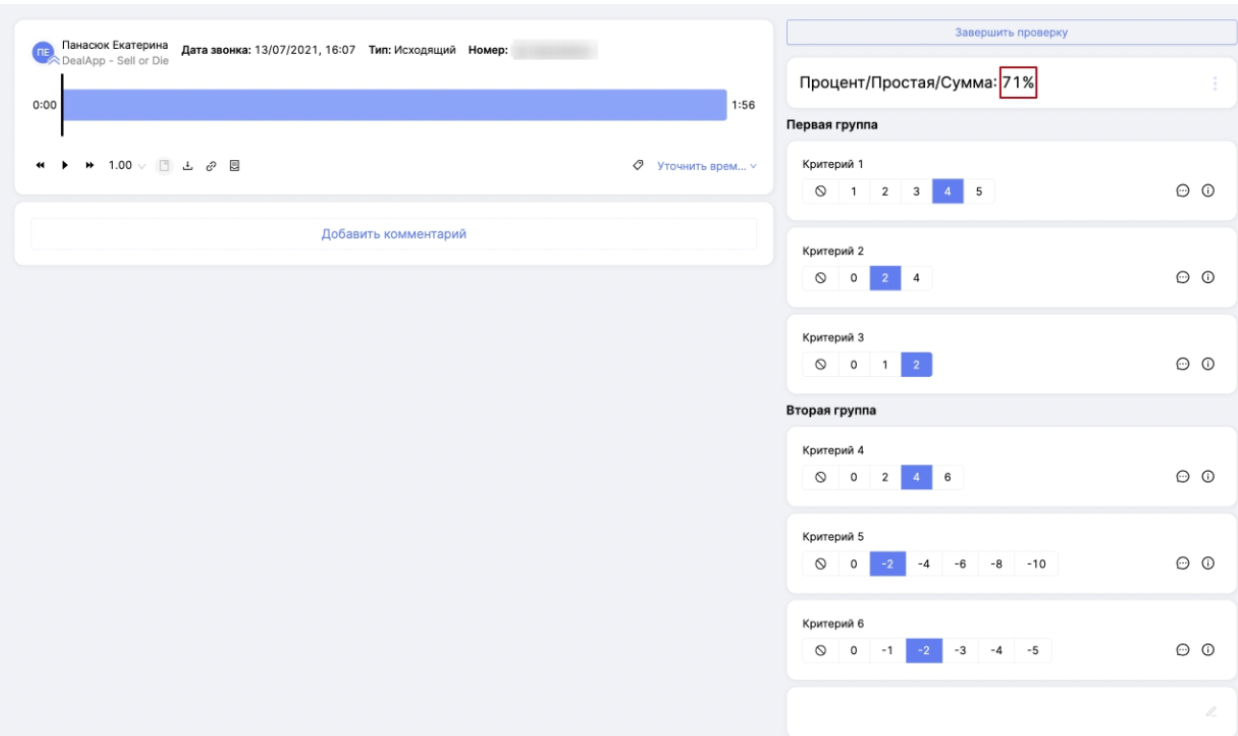 4. Обратим внимание также на ситуацию, когда вы не используете доп. настройки (автофейл, учет N/A как макс. значения), но во время оценки пропускаете оценку каких-либо критериев.
