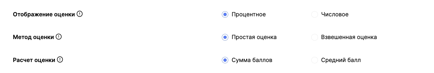 💡 Для того, чтобы наглядно увидеть, как работает подсчет, можно изучить лист "Процентная_Простая_сумма" в этом файле. Далее в статье мы подробнее рассмотрим классические и особые настройки форм оценки для данного формата подсчета.