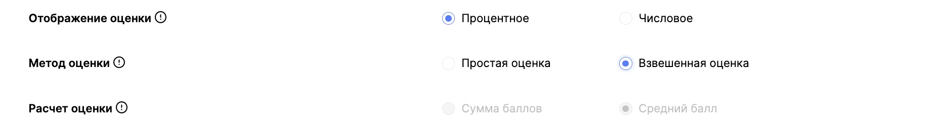 Взвешенная оценка означает, что, помимо баллов, у критерия также будет вес, на который нужно будет каждый раз умножать выбранный балл.