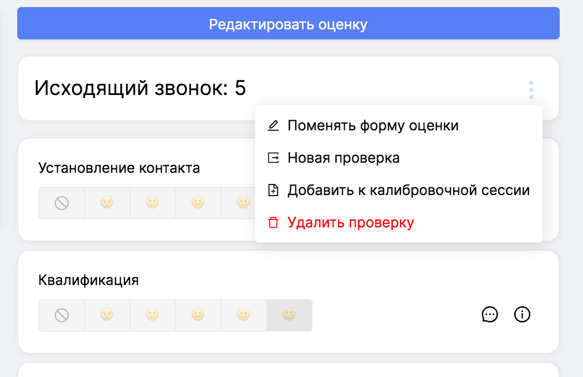 Вы можете поменять форму оценки и добавить звонок к калибровочной сессии здесь: