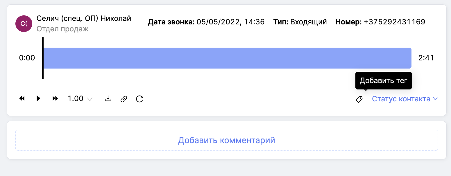 Как добавить ручной тег при оценке звонка: