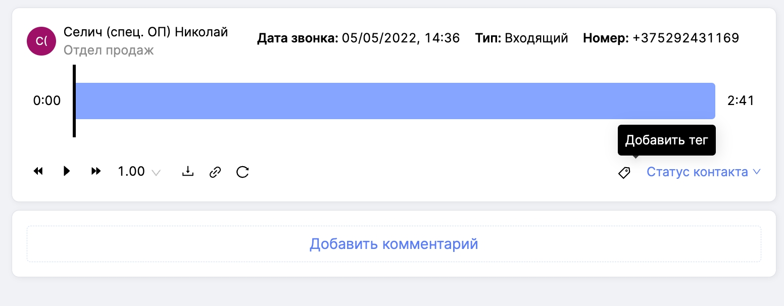 Как и многие системы Qolio обладает функционалом для работы с тегами. Теги позволяют быстро отмечать и разделять на группы необходимые коммуникации. Также теги удобно использовать для последующей аналитики.
